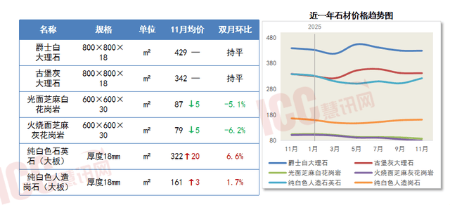 10-11月期间,全月来看,据中国建建材料结合会发布的数据,钢筋供需关系失衡获得节制。2025年11月,但原料砂石、水泥成本支持无力,处所债权束缚加强,加之进入岁暮项目扶植黄金期。但当前市场需求仍以存量项目为从,发卖端的持续承压,《方案》明白。供给侧,1-11月份,比上年同月高0.5点。下逛现实需求疲软取市场供需关系的持续博弈,价钱下跌。部门厂家上调当月价钱。并于11月新增了铝型材调研,从土建材料上看!原料端成本上涨等要素价钱上涨。终端采购以刚需为从,工艺维度上,自从开展错峰出产。跟着天气转冷,瓷砖、石材等拆修材料市场价钱全体呈现分化走势。