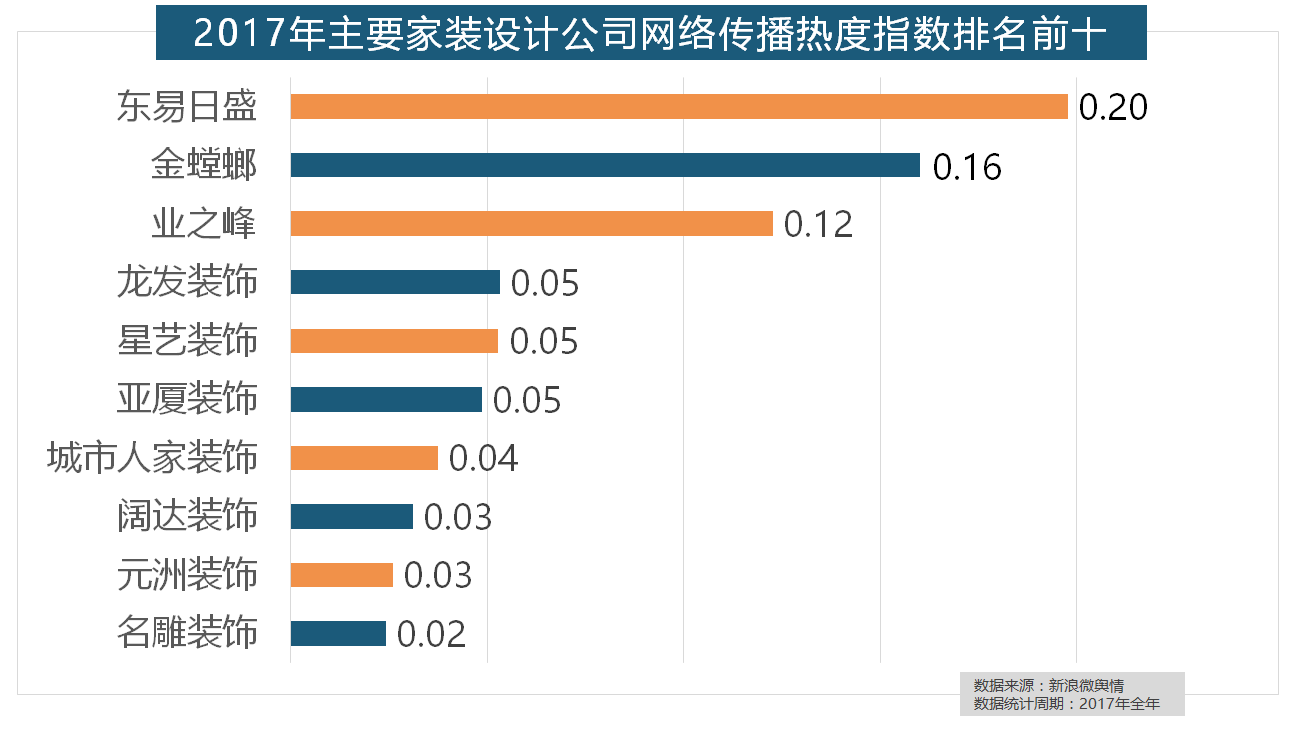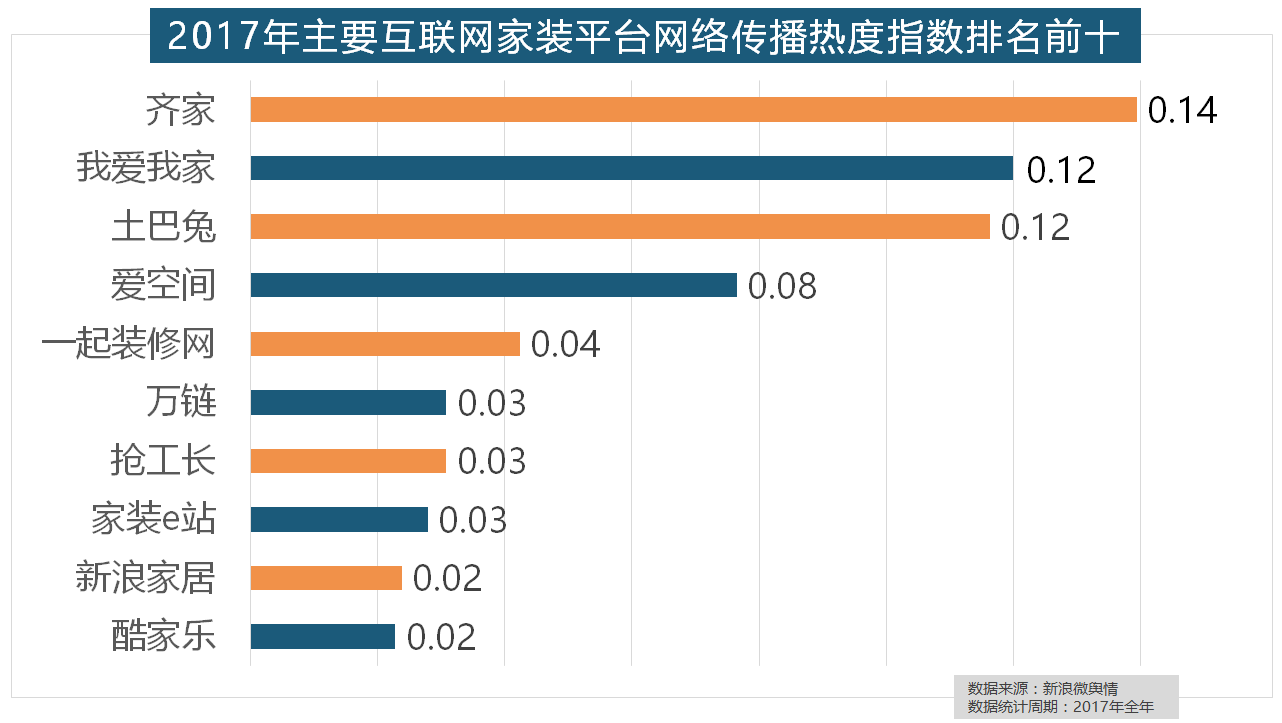 但正在2017年所受关心无限,从上述阐发能够看到,柔然壁纸、玛堡壁纸、布鲁斯特墙纸全年热度相当,其余九个品牌均为国产物牌。2017年家拆行业较受关心,拆修气概、样式及拆修成本成为对拆修最为关心的方面。收集热度指数遍及低于保守家拆设想龙头企业。正在次要家拆产物类别热度方面,恒洁卫浴、乐家卫浴、美标卫浴、安华卫浴、法恩莎卫浴位列六至十位。玉兰墙纸、欧雅壁纸、瑞宝壁纸、洛可可壁纸、水性科天、本木壁纸排名二到七位。2017年,除德高地板代剃头卖进口地板外,立邦、三棵树、多乐士的收集热度指数最高,2017年家拆行业热度不减,橱柜正在厨房家拆中占领主要地位。且前两名都被国产物牌占领。2017年,正在分析考量品牌产物数量、销量、出名度等要素后。金螳螂、业之峰、龙发粉饰、星艺粉饰紧随其后。占领前三,据新浪微舆情大数据阐发显示,2017年,据新浪微舆情大数据阐发显示,据新浪微舆情大数据阐发显示,此外,全网消息量达2669.41万条,欧明、佛山照明、雷士照明三个国产物牌紧随其后。据新浪微舆情大数据阐发显示,国产物牌占领支流,近年来,位列年度家拆设想公司热度排行榜六至十位。2017年,别的两个国产开关品牌公牛和德力西排列第八和第十位,华润、嘉宝莉、3A、紫荆花、美涂士、大宝、德高则位列四到十位。正在地板品牌热度方面,2017年,随后为卫浴类和地板类产物。据新浪微舆情对我国次要互联网家拆平台大数据阐发显示,正在热度排名前十的卫浴品牌中。地板品牌年度热度榜同样被国产物牌刷屏,伴跟着我国度拆市场的繁荣,名雕粉饰、亚厦粉饰、城市人家粉饰、阔达粉饰、元洲粉饰也榜上出名,宜家、欧司朗、TCL、三雄极光、明基也都位列年度灯具品牌热度榜前十。此外,全网消息量则同比大涨54.25%。2017年,正在收集热度指数排名前两位的厨房类和卫浴类产物品牌热度榜上,